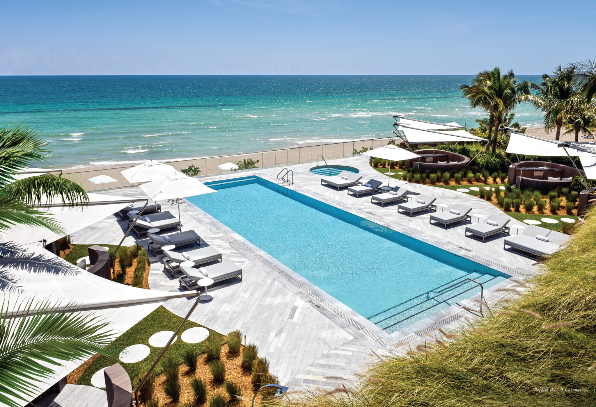 Private glass elevator access to the rooftop pool deck and three levels of 360-degree wrap-around terraces afford sweeping panoramic views of the Atlantic Ocean, Golden Beach, Intracoastal Waterway and the skylines of Miami and Miami Beach.